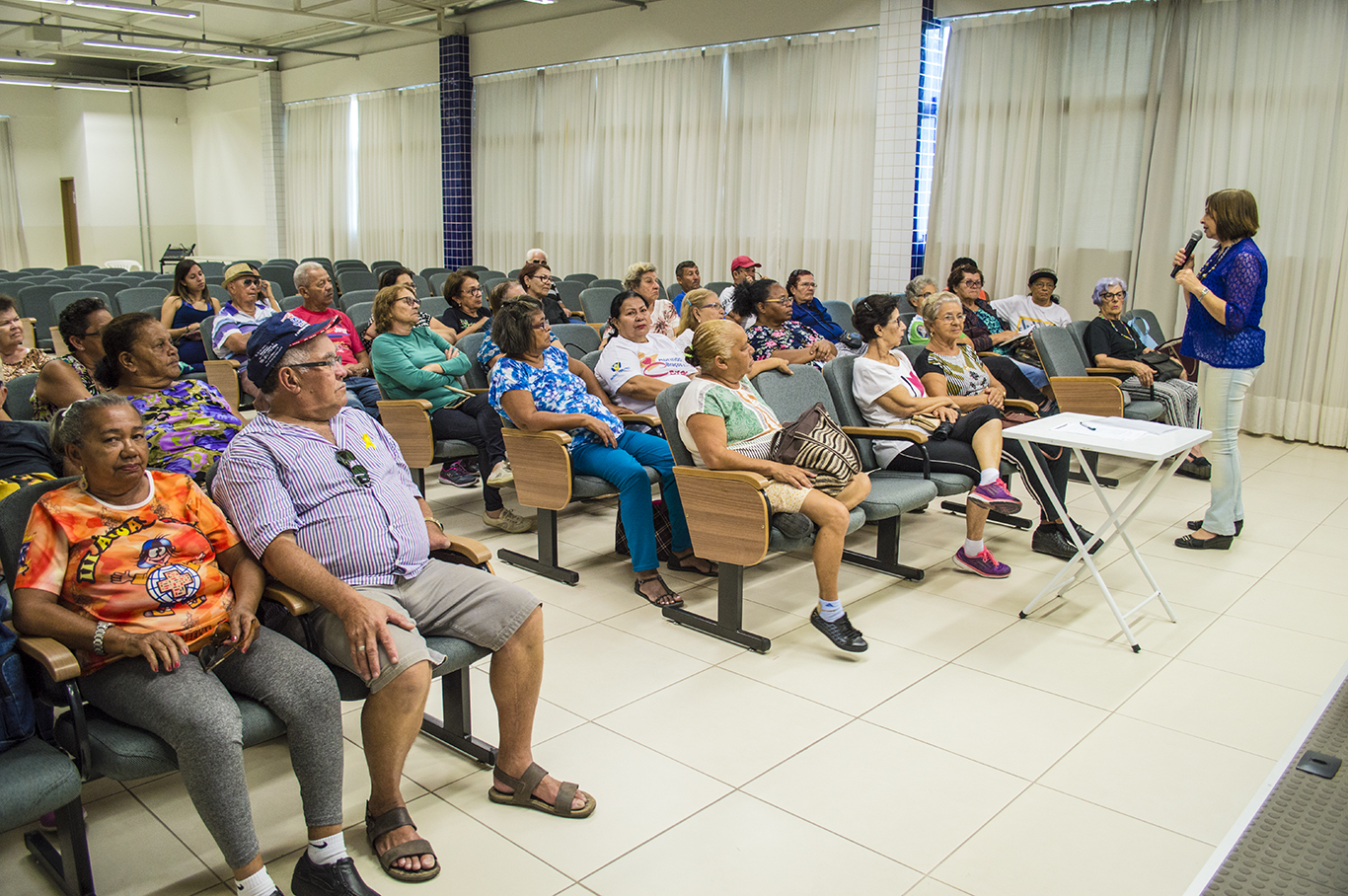 O rápido envelhecimento da população brasileira e o aumento da expectativa de vida para 75 anos deram maior visibilidade ao público idoso, o que exige redefinição das políticas públicas. Diante disso, é que a coordenadora de Promoção da Pessoa Idosa, Sonia Ramos, elaborou, com muito carinho, a programação especial para esta semana. “A palestra de hoje foi muito bem recebida pelos idosos que se interessaram pelo assunto que tem a ver com a melhoria da qualidade de vida deles. Os participantes já estão na expectativa para as demais atividades que irão acontecer no decorrer da semana”, destacou Sônia.