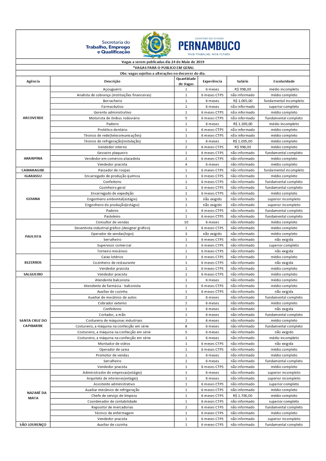 VAGAS DE EMPREGO PARA ESTA SEXTA-FEIRA (24)
